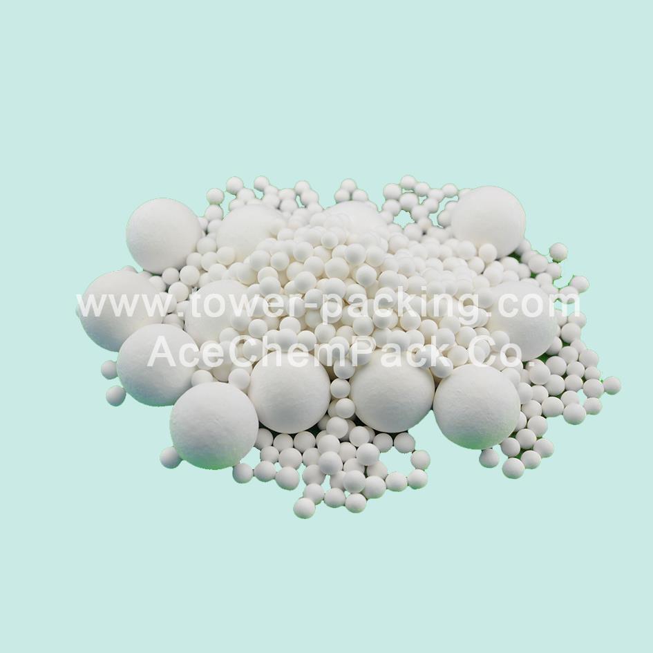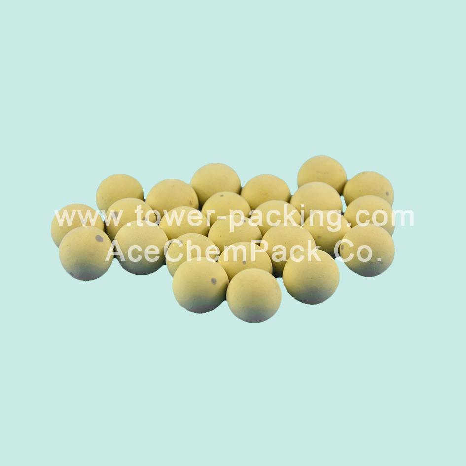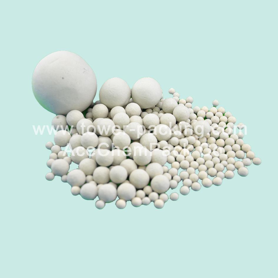 AceChemPack Inert Ceramic Ball also named Ceramic Catalyst Bed Support Media. Having stable chemical features and a low rate of water absorption, AceChemPack Inert Alumina ceramic balls can resist high temperatures and high pressure. AceChemPack Inert Alumina ceramic balls can also resist the corrosion of acid, alkali and some other organic solvents, AceChemPack Inert Alumina ceramic balls are able to stand the thermal shock (quick change of temperature) during the manufacturing process. The main role of these Inert Alumina ceramic balls is to increase the distribution spots of gas or liquid, and to support and protect the activating catalyst of low strength in the reactors and column/tower.